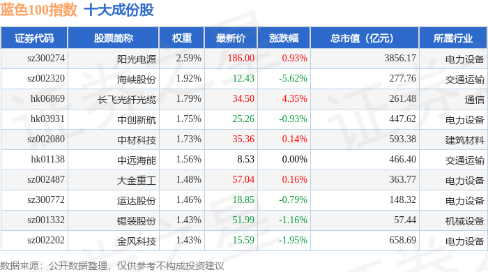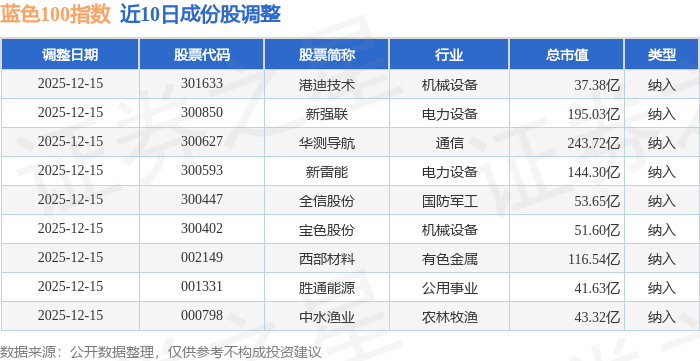 近10日内蓝色100(980068)指数成份股做了调整,新纳入了9只股票。