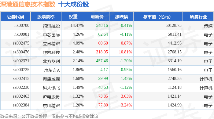证券之星消息,12月9日,深港通信息技术(983027)指数报收于9430.47点,跌0.12%,成交2946.14亿元,换手率2.55%。当日该指数成份股中,上涨的有108家,陕西华达以20.0%的涨幅领涨,下跌的有255家,云知声以19.42%的跌幅领跌。