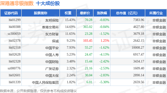 深港通非银(983053)指数十大成份股详情如下: