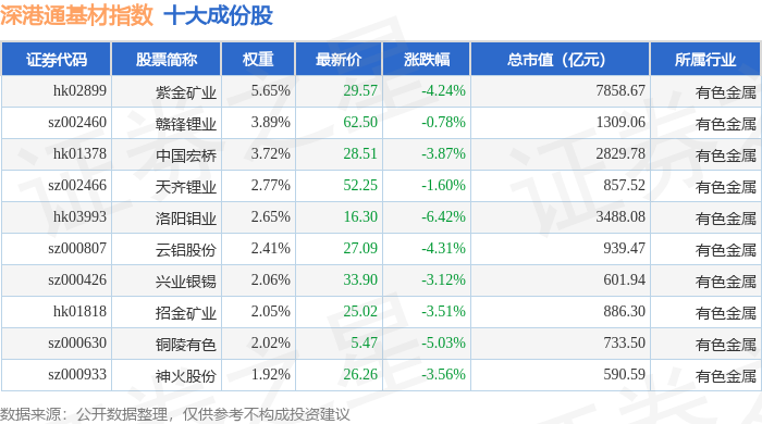 证券之星消息,12月9日,深港通基材(983061)指数报收于7105.33点,跌3.05%,成交779.79亿元,换手率1.82%。当日该指数成份股中,上涨的有17家,昇兴股份以9.99%的涨幅领涨,下跌的有122家,信义玻璃以8.11%的跌幅领跌。