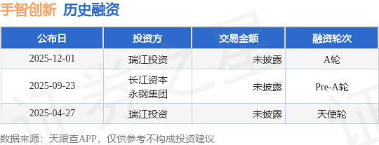 证券之星消息,根据天眼查APP于12月1日公布的信息整理,武汉手智创新科技有限公司A轮融资,融资额未披露,参与投资的机构包括瑞江投资。