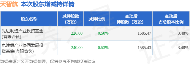 证券之星消息,12月9日天智航发布公告《天智航:关于持股5%以上股东权益变动触及1%刻度的提示性公告》,其股东先进制造产业投资基金(有限合伙)、京津冀产业协同发展投资基金(有限合伙)于2025年11月28日至2025年12月8日间合计减持466.0万股,占公司目前总股本的1.0219%,变动期间该股股价下跌2.36%,截止12月8日收盘报15.33元。