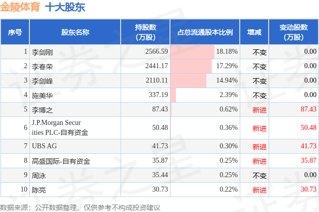 根据金陵体育2025年三季报公布的十大股东详情如下: