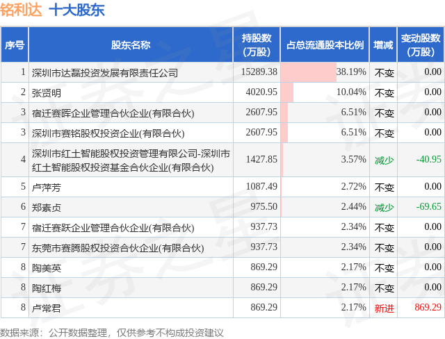 根据铭利达2025年三季报公布的十大股东详情如下: