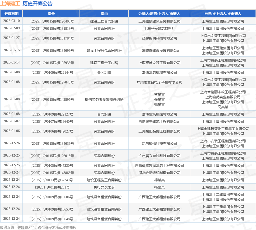 证券之星消息,根据天眼查APP显示,近日公布了一则上海建工集团股份有限公司作为被告/被上诉人的开庭公告,详细内容如下: