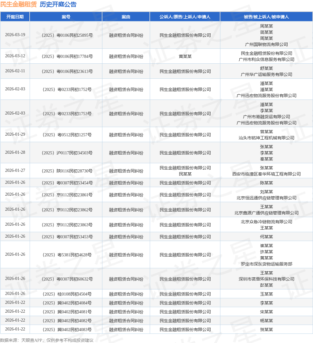 证券之星消息,根据天眼查APP显示,近日公布了一则民生金融租赁股份有限公司作为原告/上诉人的开庭公告,详细内容如下: