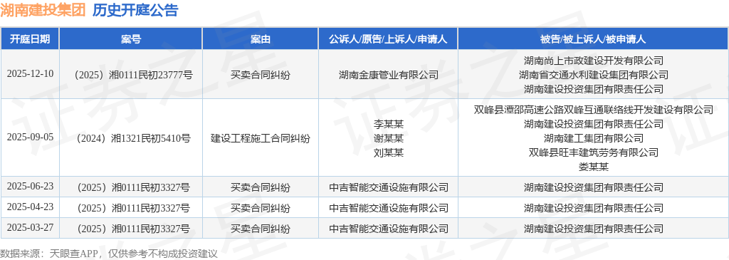 证券之星消息,根据天眼查APP显示,近日公布了一则湖南建设投资集团有限责任公司作为被告/被上诉人的开庭公告,详细内容如下: