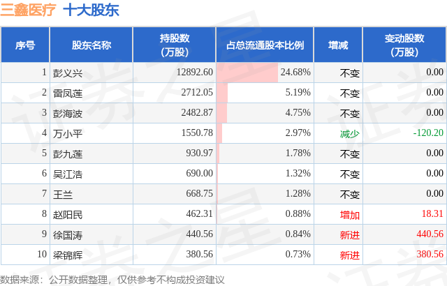 根据三鑫医疗2025年三季报公布的十大股东详情如下: