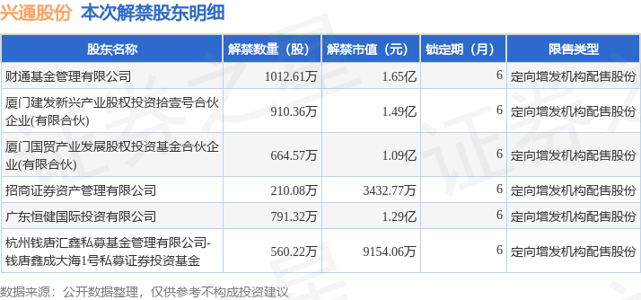 本次解禁涉及股东明细见下表: