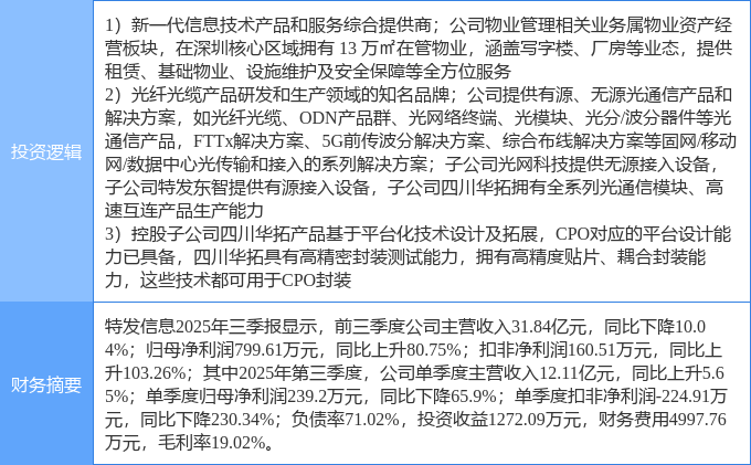 该股为物业管理,光纤概念,光电共封装CPO概念热股,当日物业管理概念上涨2.05%,光纤概念概念上涨1.79%,光电共封装CPO概念上涨1.76%。