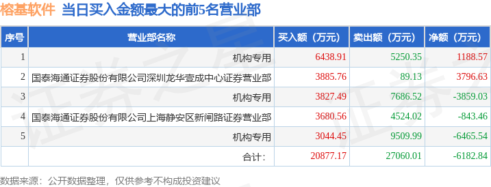 证券之星消息,沪深交易所2025年12月10日公布的交易公开信息显示,榕基软件(002474)因日换手率达到20%的前5只证券登上龙虎榜。此次是近5个交易日内第3次上榜。