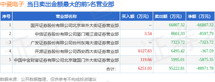 证券之星消息,沪深交易所2025年12月10日公布的交易公开信息显示,中瓷电子(003031)因日涨幅偏离值达到7%的前5只证券登上龙虎榜。此次是近5个交易日内第2次上榜。