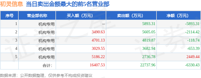 从龙虎榜公布的当日买卖数据来看,机构合计净卖出4979.69万元。