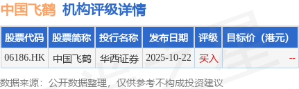 截至2025年12月10日收盘,中国飞鹤(06186.HK)报收于4.16港元,上涨0.73%,成交量2832.79万股,成交额1.18亿港元。投行对该股的评级以买入为主,近90天内共有1家投行给出买入评级。华西证券最新一份研报给予中国飞鹤买入评级。