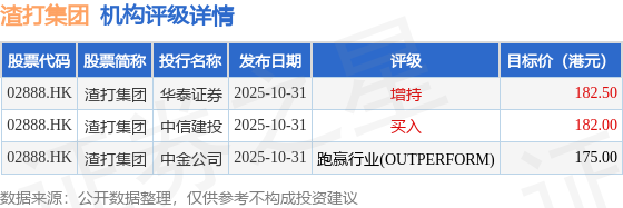 机构评级详情见下表:
