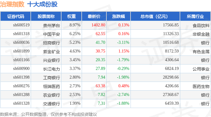 资金流向方面,治理指数(000019)成份股当日主力资金净流出合计38.82亿元,游资资金净流入合计6.42亿元,散户资金净流入合计32.4亿元。成份股资金流向详情见下表: