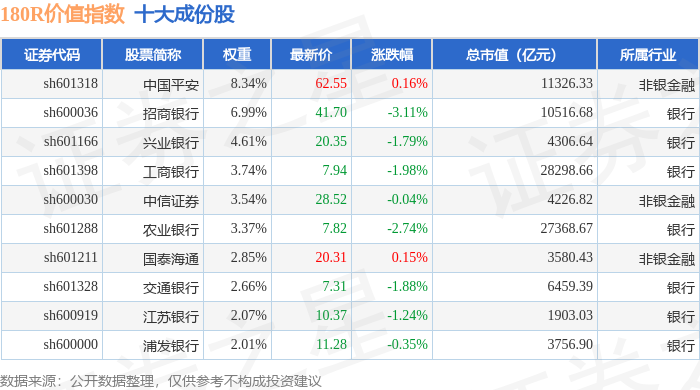 证券之星消息,12月10日,180R价值(000031)指数报收于3211.95点,跌0.66%,成交1392.05亿元,换手率0.36%。当日该指数成份股中,上涨的有65家,华润微以7.93%的涨幅领涨,下跌的有61家,中科曙光以10.0%的跌幅领跌。