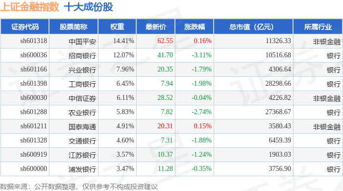 上证金融(000038)指数十大成份股详情如下: