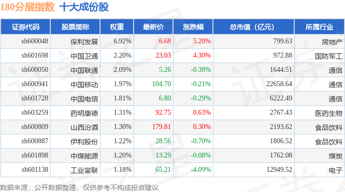 证券之星消息,12月10日,180分层(000093)指数报收于11991.42点,涨0.54%,成交2093.87亿元,换手率0.4%。当日该指数成份股中,上涨的有100家,华润微以7.93%的涨幅领涨,下跌的有74家,中科曙光以10.0%的跌幅领跌。