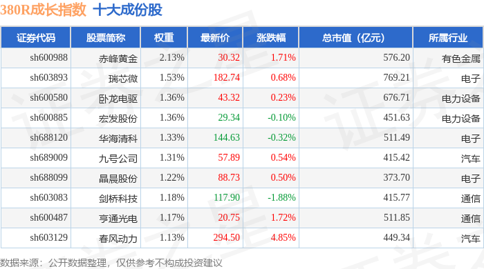 380R成长(000119)指数十大成份股详情如下: