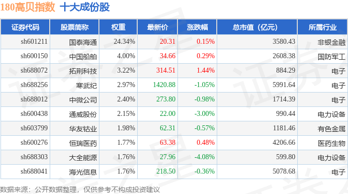 180高贝(000135)指数十大成份股详情如下: