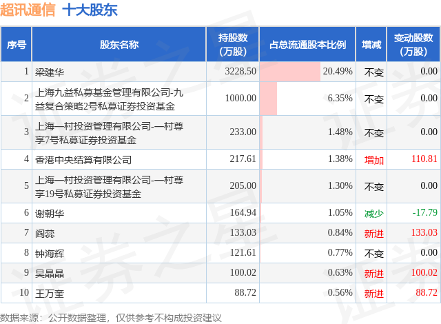 根据超讯通信2025年三季报公布的十大股东详情如下: