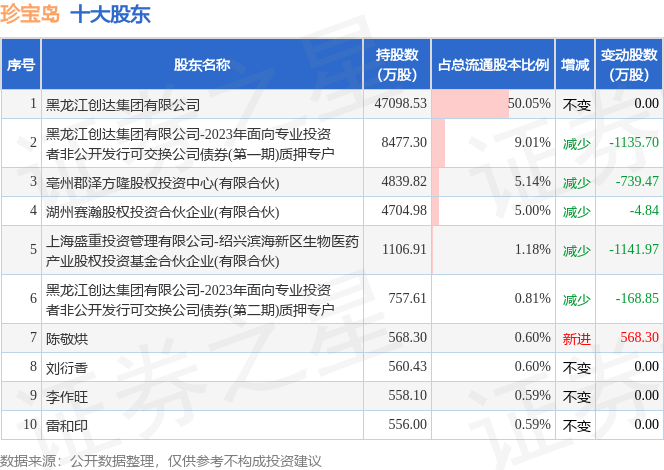 根据珍宝岛2025年三季报公布的十大股东详情如下: