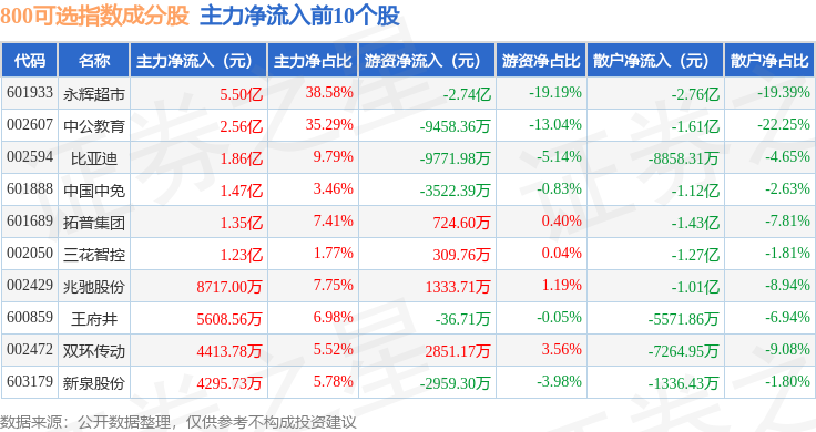 资金流向方面,800可选(000931)指数成份股当日主力资金净流入合计5.01亿元,游资资金净流出合计4.74亿元,散户资金净流出合计2779.13万元。成份股资金流向详情见下表: