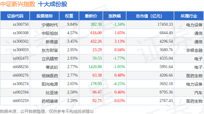 证券之星消息,12月10日,中证新兴(000964)指数报收于11069.54点,跌0.21%,成交2446.36亿元,换手率1.11%。当日该指数成份股中,上涨的有61家,华润微以7.93%的涨幅领涨,下跌的有37家,中科曙光以10.0%的跌幅领跌。