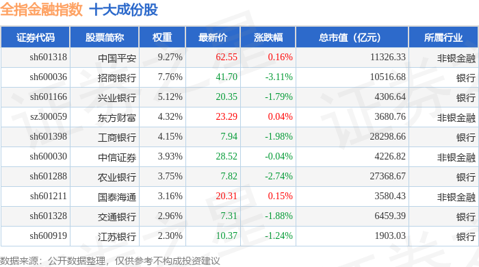 全指金融(000992)指数十大成份股详情如下: