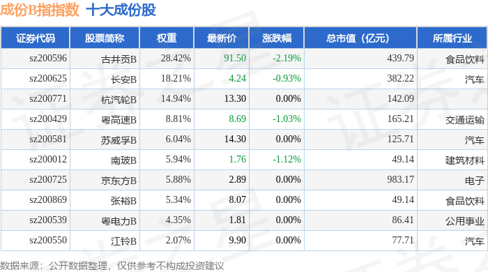 证券之星消息,12月10日,成份B指(399003)指数报收于8396.31点,跌0.93%,成交5501.73万元,换手率0.11%。当日该指数成份股中,下跌的有4家,古井贡B以2.19%的跌幅领跌。