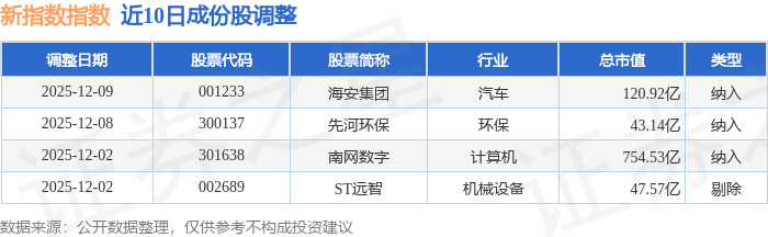 近10日内新指数(399100)成份股做了调整,新纳入了3只股票,剔除了1只股票。