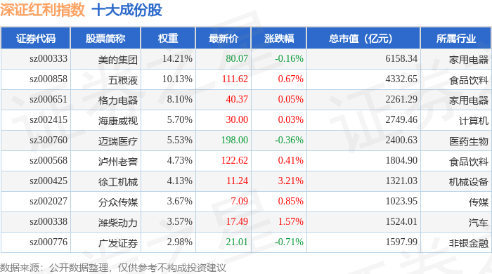 深证红利(399324)指数十大成份股详情如下: