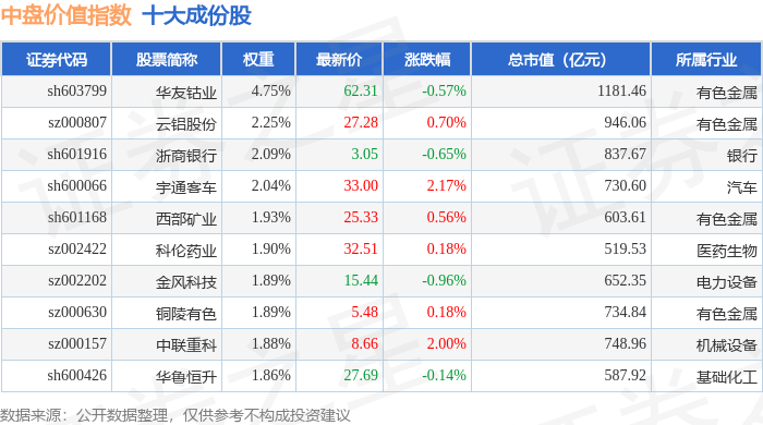 中盘价值(399375)指数十大成份股详情如下:
