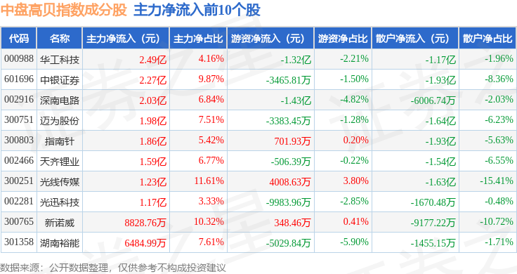 资金流向方面,中盘高贝(399407)指数成份股当日主力资金净流出合计36.06亿元,游资资金净流入合计6.48亿元,散户资金净流入合计29.58亿元。成份股资金流向详情见下表: