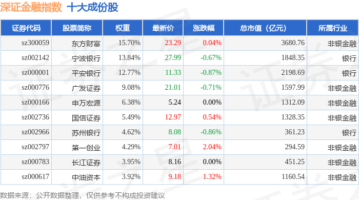 资金流向方面,深证金融(399619)指数成份股当日主力资金净流出合计3.4亿元,游资资金净流入合计1.67亿元,散户资金净流入合计1.73亿元。成份股资金流向详情见下表:
