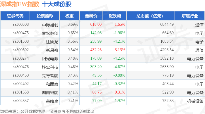 深成指EW(399659)指数十大成份股详情如下: