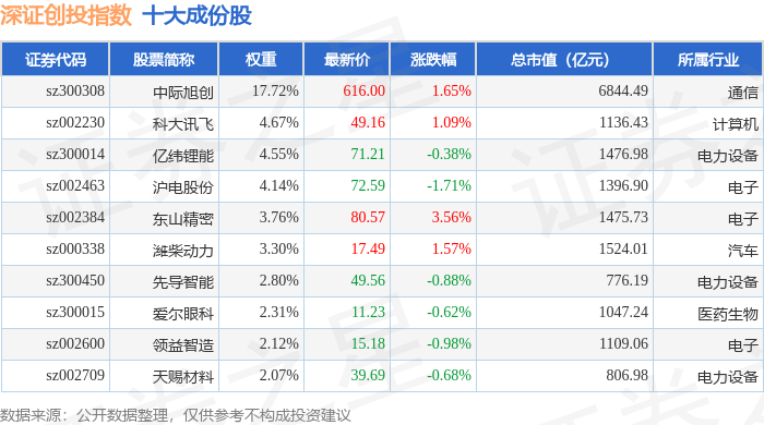 证券之星消息,12月10日,深证创投(399696)指数报收于4290.14点,涨0.8%,成交1153.21亿元,换手率3.31%。当日该指数成份股中,上涨的有76家,西部材料以10.01%的涨幅领涨,下跌的有92家,华自科技以4.71%的跌幅领跌。