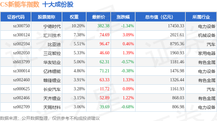 证券之星消息,12月10日,CS新能车(399976)指数报收于4305.73点,涨0.51%,成交628.2亿元,换手率2.16%。当日该指数成份股中,上涨的有22家,星源材质以8.13%的涨幅领涨,下跌的有26家,贝特瑞以3.61%的跌幅领跌。