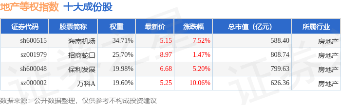 证券之星消息,12月10日,地产等权(399983)指数报收于2149.27点,涨5.95%,成交75.54亿元,换手率3.41%。当日该指数成份股中,上涨的有4家,万科A以10.06%的涨幅领涨。