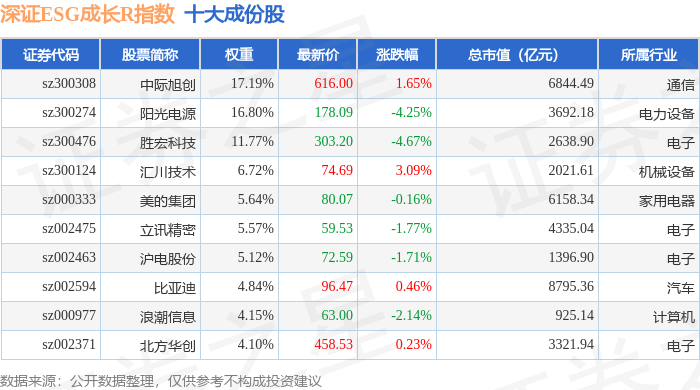 深证ESG成长R(470060)指数十大成份股详情如下: