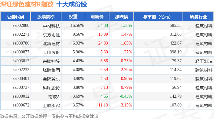 深证绿色建材R(470077)指数十大成份股详情如下: