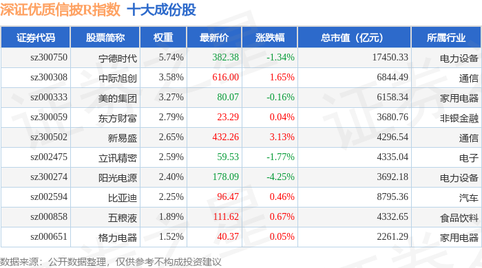 证券之星消息,12月10日,深证优质信披R(470065)指数报收于3680.38点,涨0.2%,成交3535.28亿元,换手率1.56%。当日该指数成份股中,上涨的有276家,万科A以10.06%的涨幅领涨,下跌的有195家,南山智尚以10.86%的跌幅领跌。