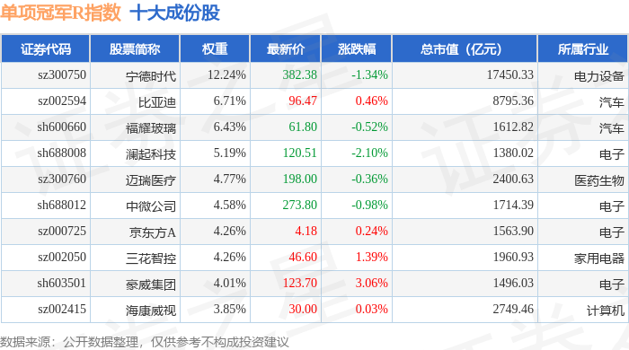 近10日内单项冠军R(480150)指数成份股做了调整,新纳入了5只股票。