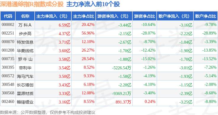 资金流向方面,深港通综指R(483005)指数成份股当日主力资金净流出合计143.3亿元,游资资金净流出合计4045.05万元,散户资金净流入合计143.71亿元。成份股资金流向详情见下表: