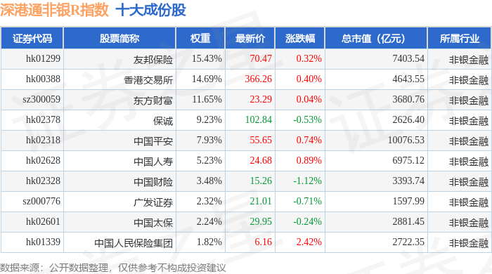 证券之星消息,12月10日,深港通非银R(483053)指数报收于8845.01点,跌0.02%,成交205.81亿元,换手率0.66%。当日该指数成份股中,上涨的有35家,华金资本以10.01%的涨幅领涨,下跌的有21家,德林控股以7.77%的跌幅领跌。