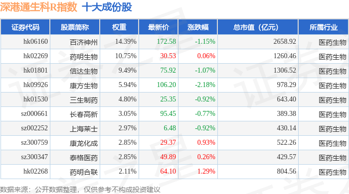 证券之星消息,12月10日,深港通生科R(483059)指数报收于7610.91点,跌0.69%,成交105.36亿元,换手率0.75%。当日该指数成份股中,上涨的有31家,万泽股份以6.51%的涨幅领涨,下跌的有27家,再鼎医药以4.42%的跌幅领跌。