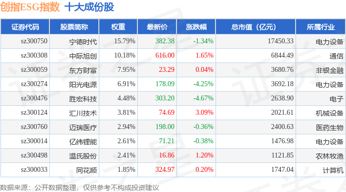 近10日内创指ESG(970028)指数成份股做了调整,新纳入了7只股票,剔除了7只股票。