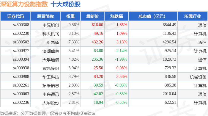 证券之星消息,12月10日,深证算力设施(970051)指数报收于12000.06点,涨0.56%,成交1131.24亿元,换手率2.68%。当日该指数成份股中,上涨的有25家,长芯博创以7.09%的涨幅领涨,下跌的有25家,江波龙以4.21%的跌幅领跌。