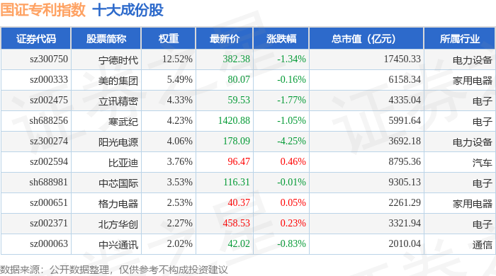 近10日内国证专利(980070)指数成份股做了调整,新纳入了10只股票,剔除了1只股票。